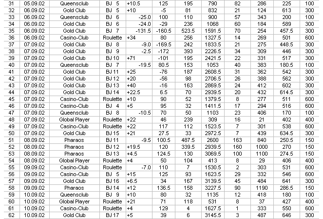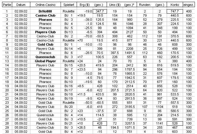 im September 2002 in 11 verschiedenen Online-Casinos