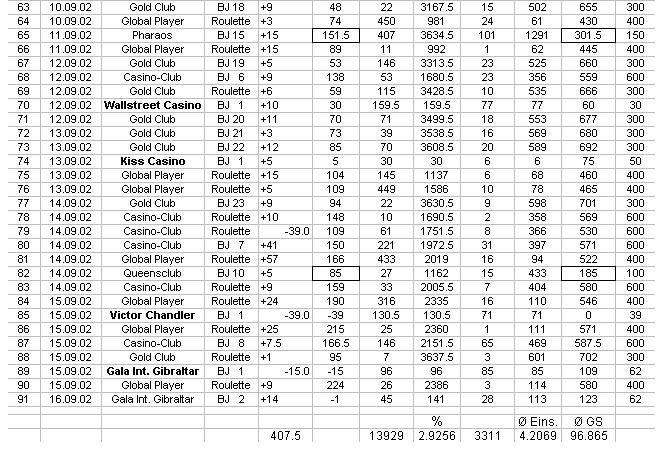 beim Roulette bzw. der gespielten Hände beim Blackjack. Im Durchschnitt
