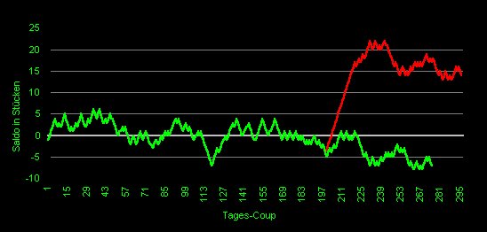 sehr gering. Die Saldokurve pendelte flach um die Null-Linie. Solche